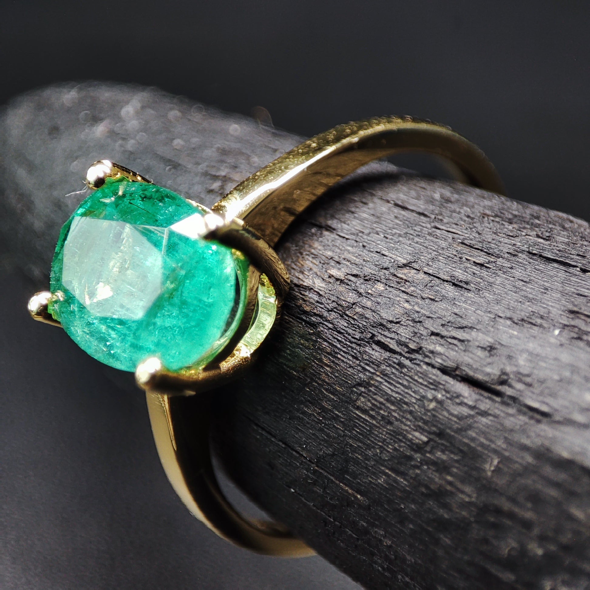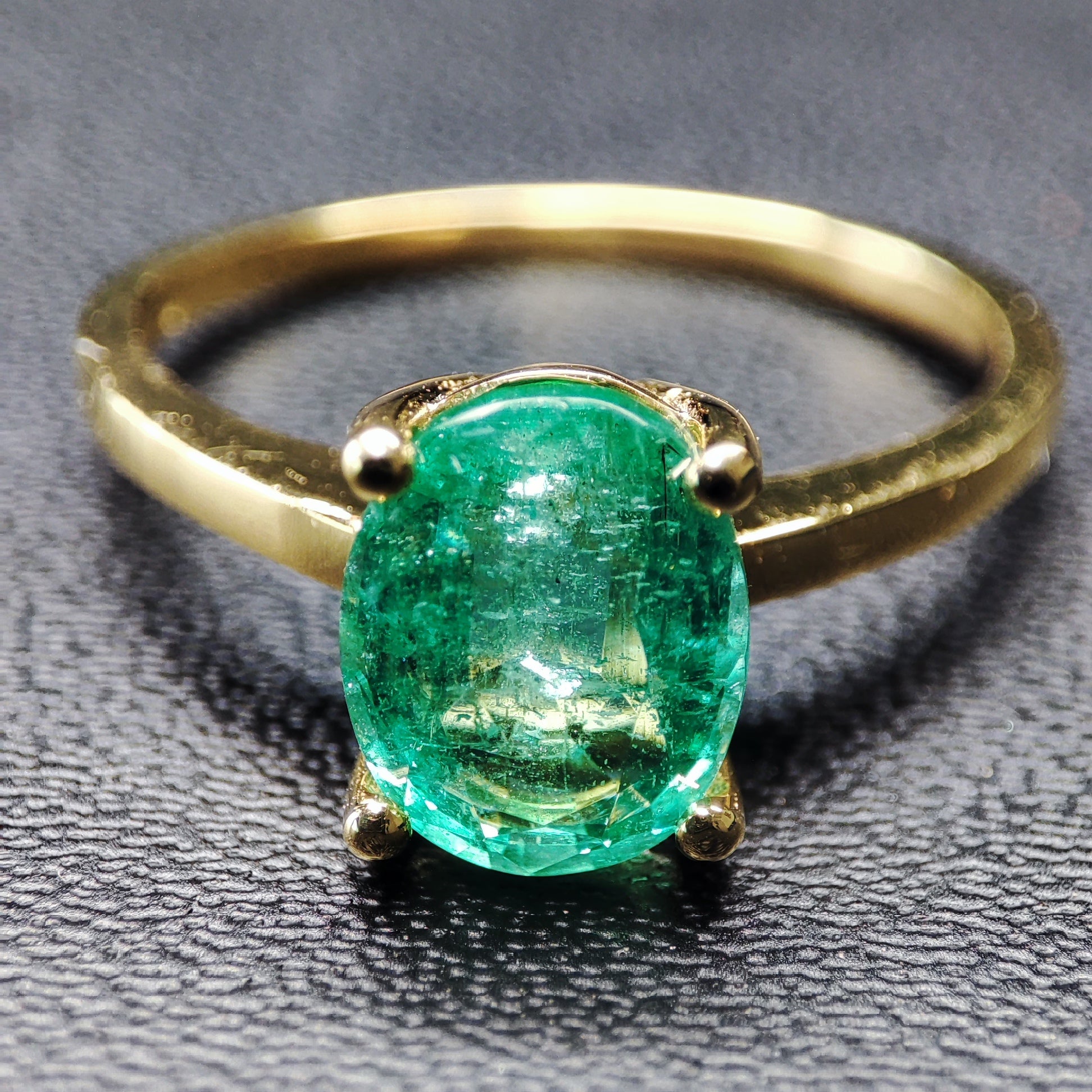 18 Kts Solitaire Ring with 1.2 Carats natural Green emerald mined ethically in Zambia in ovale cut.
